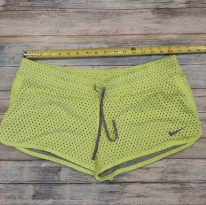 Nike Reversible Athletic Shorts with elastic and a charcoal gray drawstring waist in the color Volt ( a neon yellow/green and cool gray). Pre-owned, in excellent condition. Never worn. Size listed as on tags (L). Please see the pictures.
