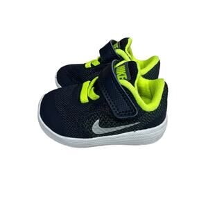 Nike Revolution 3 Baby Infant Boy's Sneakers Athletic Shoes Navy Blue Neon Yellow White Size 2C