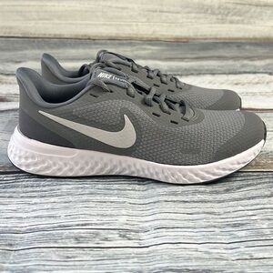 NWT Nike Revolution 5 (GS) Run and play in the Nike Revolution 5. Lightweight mesh stretches around your feet, and soft foam cushioning gives you revolutionary comfort. Cool Grey/ Pure Platinum Youth Size 5.5