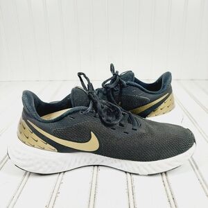 Nike Revolution 5 Premium 'Black Metallic Gold' Athleisure Running Sneakers D288