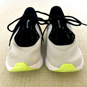 This is a Nike Revolution running shoe with stylish coloring of Gray, White , blue, green and black. Light weight and excellent cushioning. Worn one time.