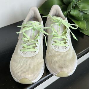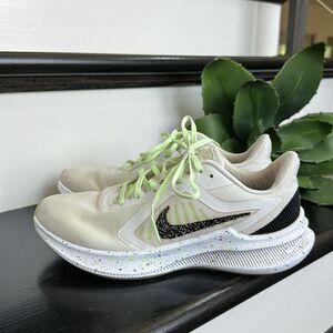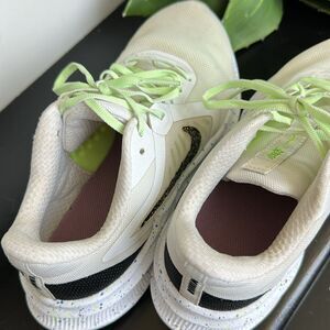 Step into comfort and style with these Nike Revolution 6 Next Nature Running Shoes in a fresh white and volt colorway. Featuring a breathable mesh upper, neon green laces, black speckled Swoosh, and a cushioned sole with colorful speckle accents, these sneakers are perfect for the gym, running, or everyday wear. The gum rubber outsole provides excellent traction, while the lightweight construction offers all-day comfort. Gently used and in very good condition with light signs of wear—plenty of life left for your next workout or casual day out. From a no smoking home.