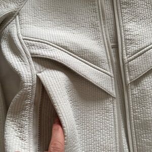 Color is a cool gray. Ribbed detail makes a flattering fit.