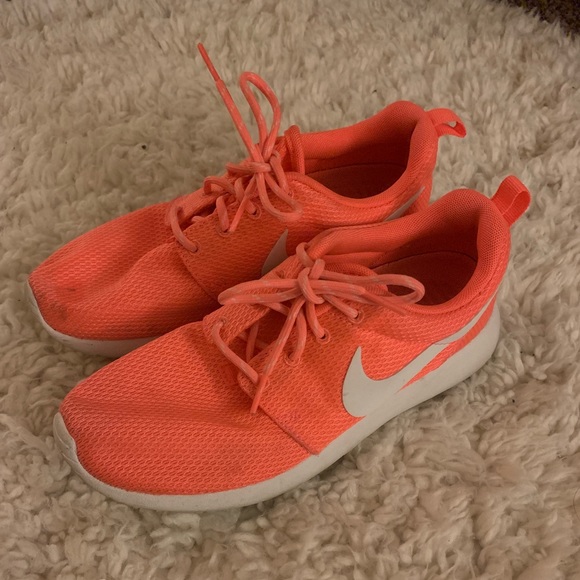 These are nice and comfy, they do have a small stain on the front (as shown in picture). Very bright and are a coral color. Perfect to wear casually or working out.