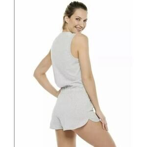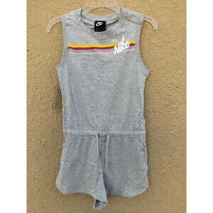 Brand new with tags, this Nike romper in size XS features a gray colorway with rainbow accents. With a MSRP of $65, this lightweight and breathable 100% cotton one-piece is ideal for light workouts or casual wear.