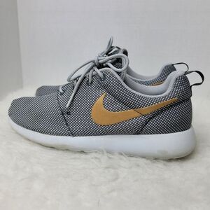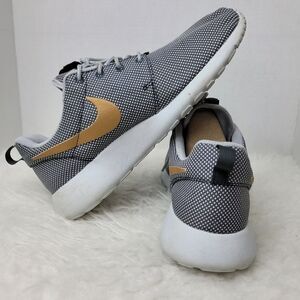 Nike Roshe Grey Gray Gold Sneaker Athletic Casual Shoes Womens Size 9