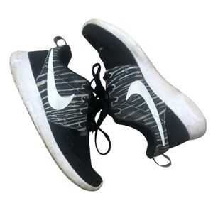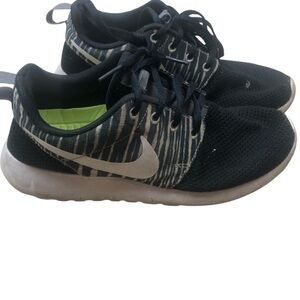 Nike Roshe One Sneakers. Custom NikeID Black & White Zebra Print. Lace up front closure. Size 7. Preloved condition. Wear on heels, couple White paint spots, & small hole in toe. Made in Vietnam.