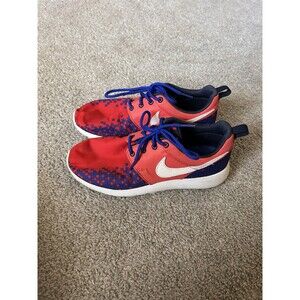 The Nike Roshe One Print GS in Light Crimson Blue is a stylish athletic sneaker designed for youth size 6. This unisex kids' shoe features a synthetic upper material with a vibrant blue color and red accents, making it a trendy choice for active children. With the iconic Nike Roshe One model, this shoe combines comfort and style for everyday wear or sports activities. Perfect for little ones who want to stand out and stay active.