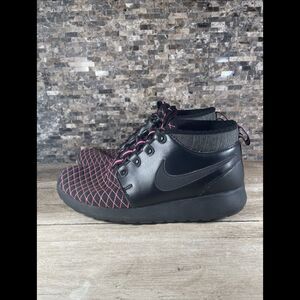 Nike Roshe One Mid Black Pink Leather Sneakers Size 7Y Women’s 8.5 807576 001