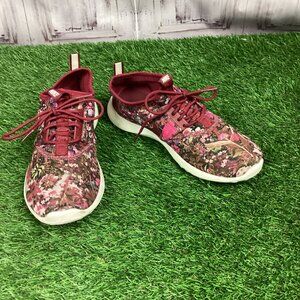 Nike Roshe Two floral print burgundy red with rubber soles. Good used condition. Great sneakers for running, walking, jogging or running around.