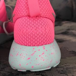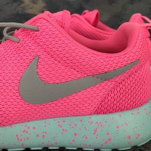 Authentic. Brand new. It was created by my ex from NikeID. Pink with grey Nike logo. Bottom is greyish blue? with pink speckles. Only flaw is the back, he had names engraved and I removed it myself. I posted the back of each on last two photos for reference. I don't think it's bad at all. No box. Paid more than retail due to customization at that time. NO OFFERS!