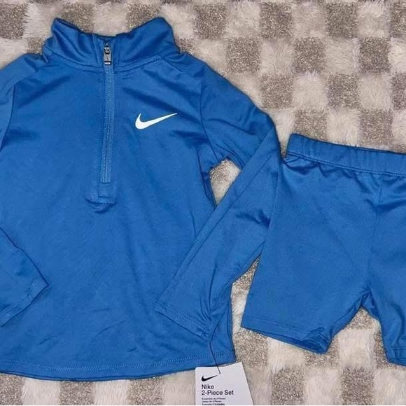 Stylish Nike set in royal blue. Includes a 1/4 zip-up top and matching shorts. Features signature logo.
