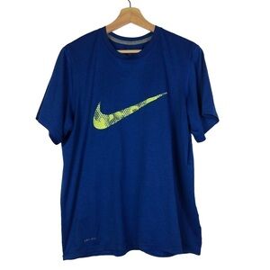 Nike Royal Blue Green Swoosh Logo Crewneck Short Sleeve Athletic Tee