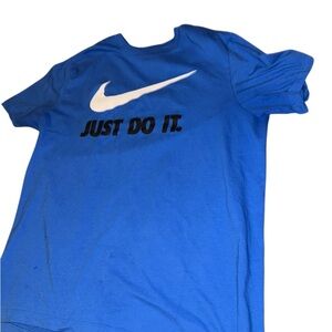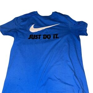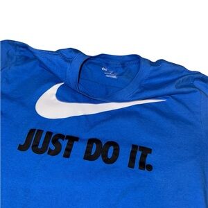 Vibrant blue Nike tee. Features white swoosh and bold 'Just Do It' text.