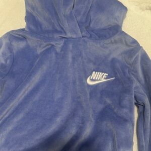 Nike velour tracksuit in royal blue. Includes hoodie and joggers. Soft and stylish.