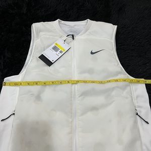 This Nike Running Division AeroLayer Therma-FIT ADV Running Vest is perfect for men who love to stay active. Made of 100% polyester blended fabric, this lightweight and breathable vest comes in a stylish white color and features a full zip closure for added convenience. With its sleeveless design, it is perfect for both walking and running, and its synthetic insulation material ensures that you stay warm and comfortable even in chilly weather.