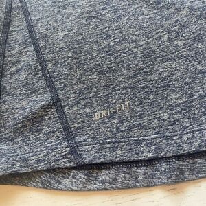 This is a Nike women’s pullover quarter zip super soft heathered navy long sleeve shirt. Great condition. It is a little bit fitted. See picture for details. Like new condition. The interior lower tag is cut out, but everything else looks new about it. The Nike emblem is up on the collar. Great for running or any other outdoor activity . Cute with a pair of leggings or shorts.