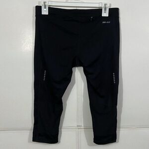 Gently worn women’s size medium Nike dri fit running activewear capris. Inner drawstring waistband, reflective details, zipper pockets, stretch, Comes from a smoke free home, bundle with other items to save & minimize shipping cost.