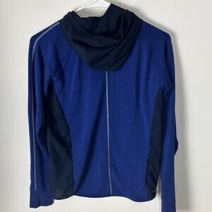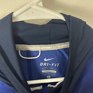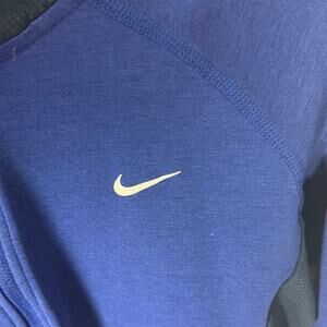 Gently Used Nike Running Dri-Fit Quarter Zip Hoodie. This is a women’s small. Two tone blue. Reflective Nike swoosh on the chest. Lightweight. Great for working out or the gym!