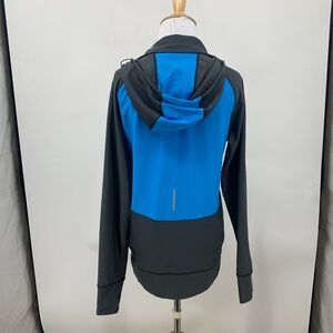 NIKE RUNNING JACKET WOMENS M MEDIUM GRAY BLUE FULL ZIP MOCK NECK HOODED DRI FIT
