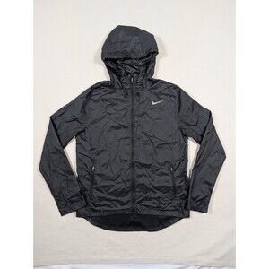 Nike Running Jacket Womens Small Black Hooded Windbreaker Reflective Jogging