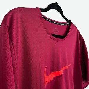 Nike Running Mens Dark Red Swoosh Short Sleeve Logo T Tee Athletic Shirt XXL 2X