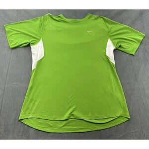 Nike Running Shirt Mens Large Dri Fit Solid Green Short Sleeve Run Breathable