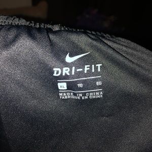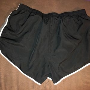 Black 3" Nike running shorts with white and grey side paneling. Barely worn. No flaws.