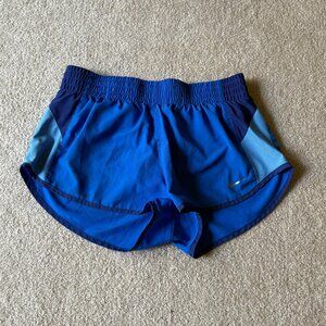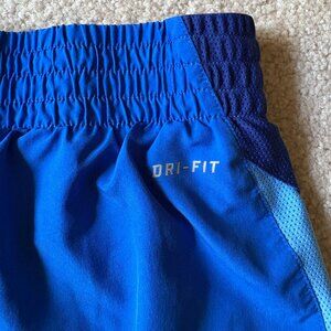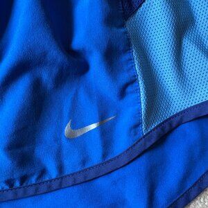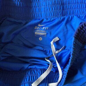 Running/athletic shorts from Nike. These are cobalt blue with light blue mesh sides and an dark blue edging. They have an internal underwear and drawstring. Size small and fits true to size and would also fit an extra small. 2" inseam.