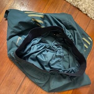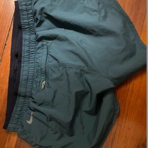 Blue running shorts with fun designs on the side! Lightweight athletic shorts with a built-in liner and back zipper pocket.