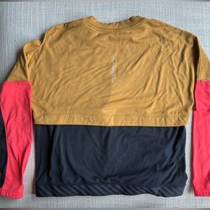Nike Running Top | size large | mustard, neon pinkish red and black | zip pockets, thumb holes | cute and comfy! Only worn a couple times