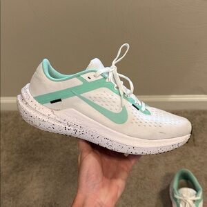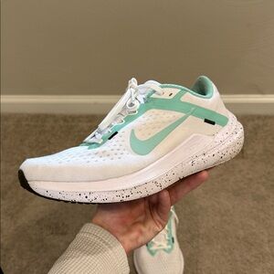 Nike Running Winflo 10 sneakers in white with teal accents. Gently Used