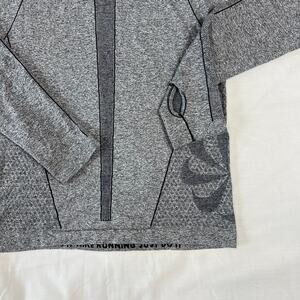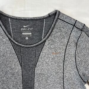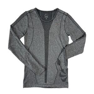 Picturing the grey Nike Running women's Small fitted athletic top.