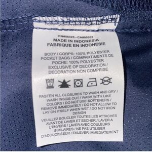 There are reflective stripes on each sleeve and front pockets with snap closures.