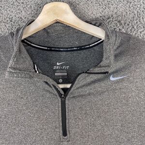 Up for sale is a Nike Running Element 1/4 Zip Mens Large Gray Athletic Thumbholes Reflective. It is gently pre-owned and in good shape with no visible issues observed other than some light wear to the graphics - check out the pics for details.