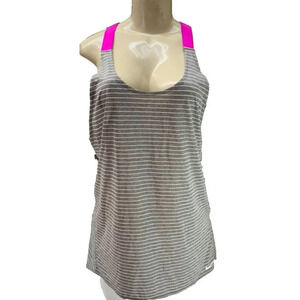 ITEM: Nike S Gray Striped Logo Neon Pink Straps Curved Hem Racerback Tank Top