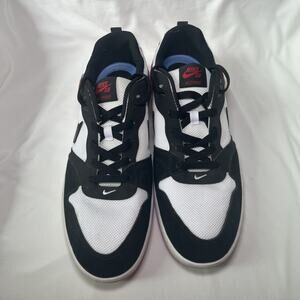The Nike SB Alleyoop Black Toe Chicago Men's Size 13 Red White Black Dunk CJ0882-102 is a stylish and versatile sneaker suitable for various occasions such as activewear and casual outings. This shoe features a lace-up closure, a solid black color with red and white accents, and a low-top shoe shaft style. With a cushioned and comfortable design, this sneaker is perfect for activities like skateboarding, basketball, and running. The synthetic upper material, rubber outsole, and foam insole provide durability and support, making it a practical choice for everyday wear in all seasons.