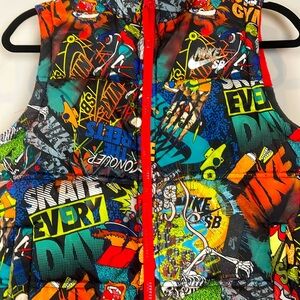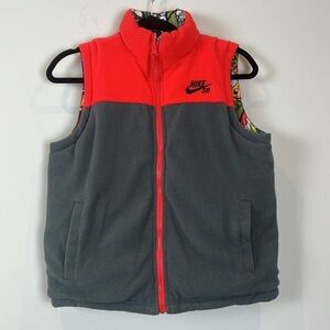 Nike SB Boy’s Small Reversible Puffy Vest Graffiti Red Grey Fleece Sz Small 8-10