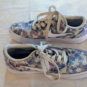 Lightly worn once — excellent condition! These canvas Nike SB skate shoes feature a white, fossil, and evergreen floral pattern for a clean and stylish look. Great for skating, casual wear, or adding a fresh vibe to your outfit.