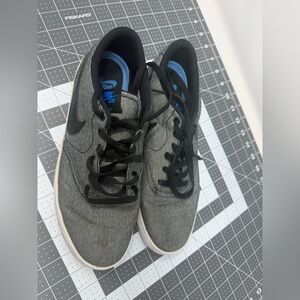 Nike SB Check Solarsoft Canvas skateboarding shoes. Stylish Nike sneakers in black and gray. Perfect for everyday wear. Gently worn but has a stain (may wash out) on the toe box as seen in photo.