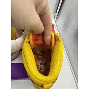The Nike SB Dunk High Sweet Tooth Candy Corn (FN5107-700) Men's Size 10.5 is a limited edition sneaker featuring a high-top style with a lace-up closure. The shoe is designed with a vibrant candy corn pattern in shades of Amarillo, Orange, White, and Black. Made with leather upper material and a rubber outsole, this sneaker offers comfort and cushioning for both casual and activewear occasions. Perfect for lifestyle and skateboarding activities, this Nike SB Dunk model is a unique addition to any sneaker collection.