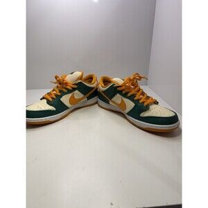 Up for sale is a pair of Nike SB Dunk Low Pro sneakers in the Green/Orange Croc Skin colorway (Style Code: 304292-383). These shoes are in excellent condition with very minimal signs of wear.