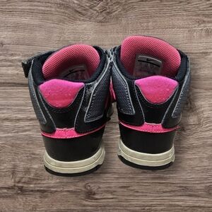 Pre-loved black, pink, and dark gray Nike SB sneakers. Size 5Y. Pink shoelaces.