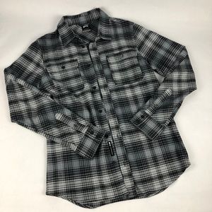 Nike SB men's long sleeved button up plaid shirt, black and gray, double chest pocket. 98% cotton. SIze Small. Like brand new condition. No signs of wear.