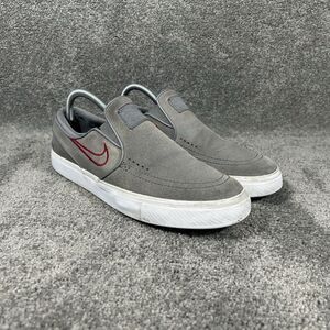 The Nike SB Zoom Janoski 833564-006 Men's Size 9 Gray Suede Slip-On Skate Shoes are a stylish and comfortable option for those looking for athletic shoes suitable for various activities such as walking, skateboarding, and casual wear. Featuring a lace-up closure, cushioned insole, and rubber outsole, these shoes offer a lightweight and adjustable fit for all-day wear. Made with high-quality materials like suede and fabric lining, these sneakers are designed for comfort and performance in the summer, fall, and spring seasons. With a classic and colorful design, these Nike Zoom Stefan Janoski shoes are a versatile option for active individuals.