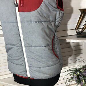 Nike SC logo puffer vest in gray and dark red with a turtleneck and pockets. Size Small.