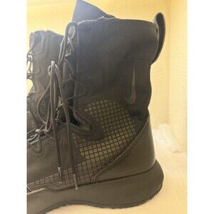 Nike SFB B2 Men's size 15 'Triple Black' Tactical Outdoor Boots are versatile combat boots featuring lace-up closure, mid-calf shaft style, cushioned insole, lightweight construction, and breathable synthetic upper material. Ideal for activewear, workwear, or casual wear, these boots offer comfort and support with a rubber outsole. Perfect for tactical, military, or athleisure styling in all seasons. Brand: Nike. Model: SFB B2.