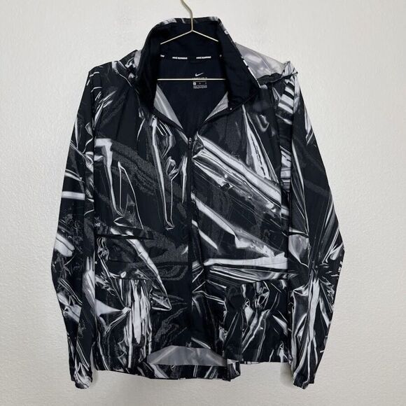 Nike SHIELD Jacket Medium Full-Zip Running Black Mesh Panel Hide Away Hooded