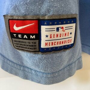 Nike MLB Genuine Merchandise T-shirt in light blue. Features bold logo patches.A quality made tee.Wear it in support of one of your favorite teams. Good condition