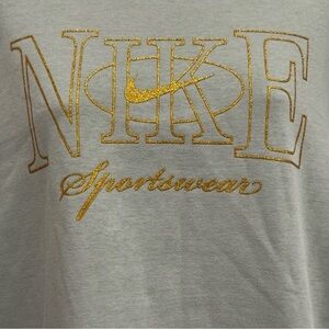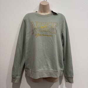 Nike Sage Green Club Fleece Sweatshirt Size M Pull Over Crew Neck Logo Glitter